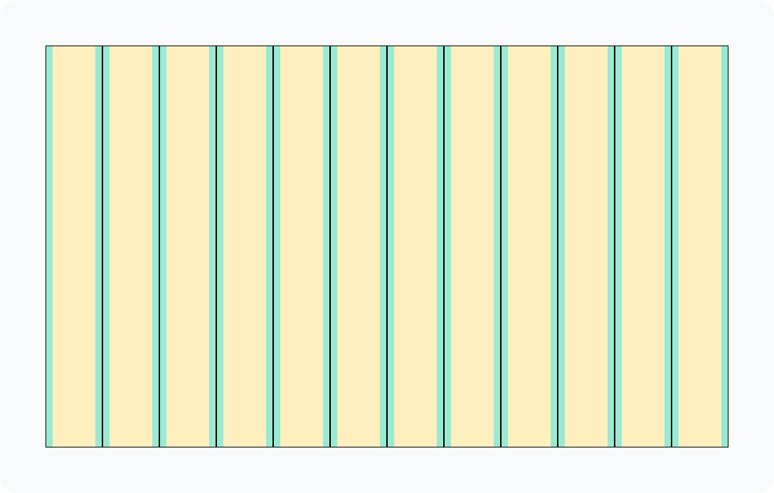 · 맨 양끝의 칼럼 끝에 남는 거터 절반은 좌우 여백으로 사용