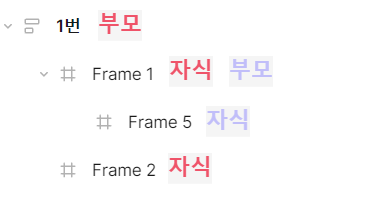 · 프레임 : 피그마 디자인의 기본 단위로 코드 블록을 만드는 기능이자 실제 화면으로 인식되는 개체.