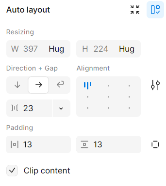 🌟 ⑤ 리사이징 - 프레임의 기본값 Fixed(가로, 세로 고정) 상태를 오토레이아웃으로 감싸면 서로 영향을 주고 받을 수 있는 새 사이즈 값이 생김!