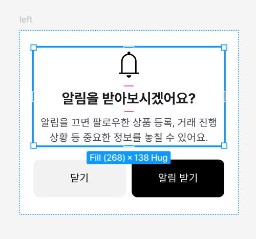2개 타입의 다이얼로그로 디자인하는 건데, 만들고 튜터님이 만든 정답 파일과 비교해보니 내 컴포넌트는 너무 각각의 컴포넌트로 나누어 디자인 하고 있다는 것을 깨달았다..!
