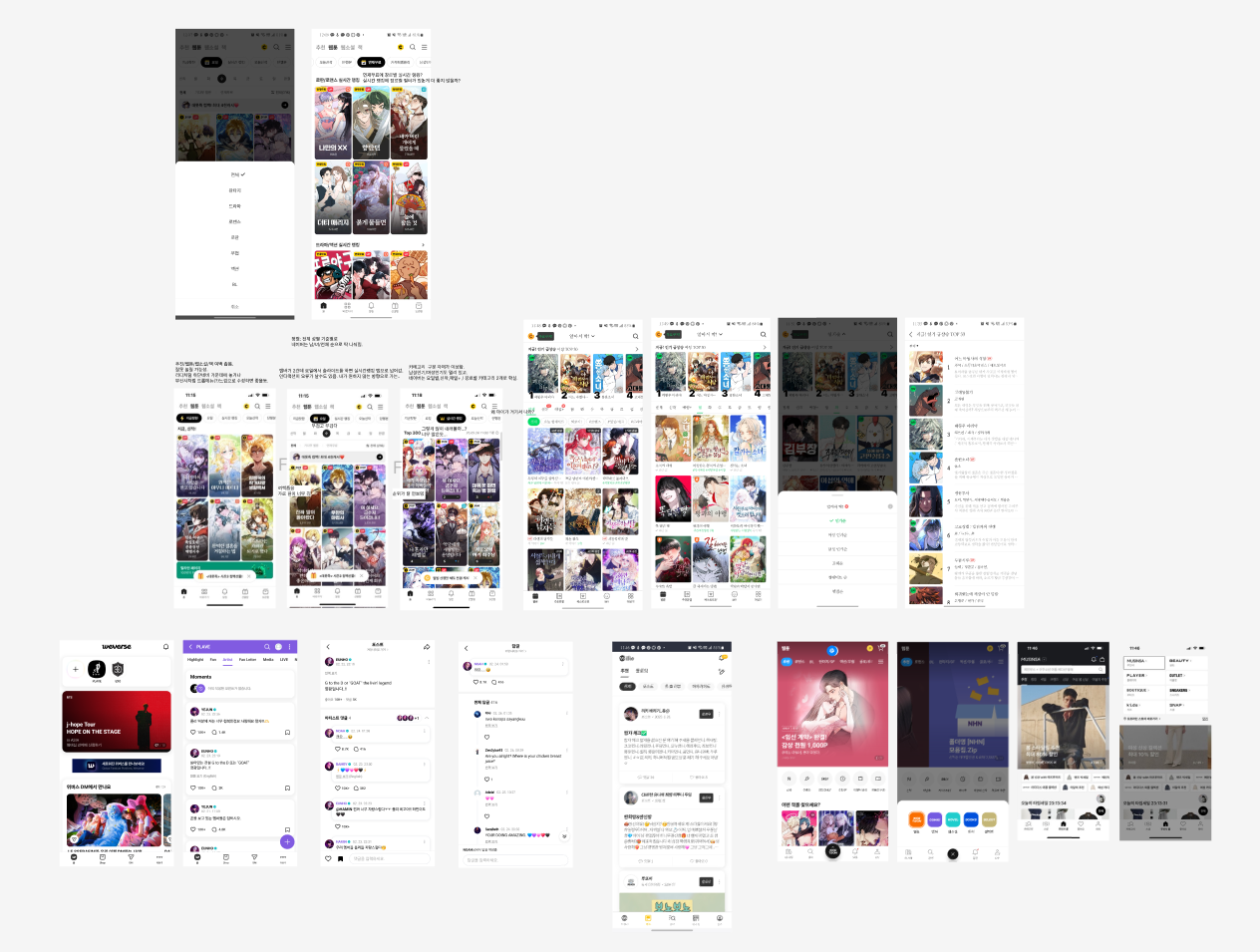 내가 맡은 어플은 라프텔이라 주요 UI들을 모아봤다. 아마 내일 분석하고 정리 예정!