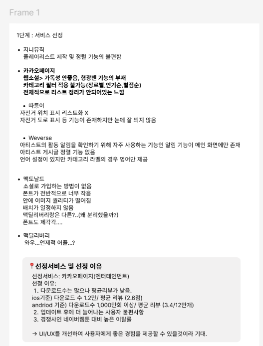 각각 많은 앱들이 의견으로 나왔는데, 설치 수에 대해 별점도 낮고 경쟁사도 많은 카카오페이지로 선정하였다.