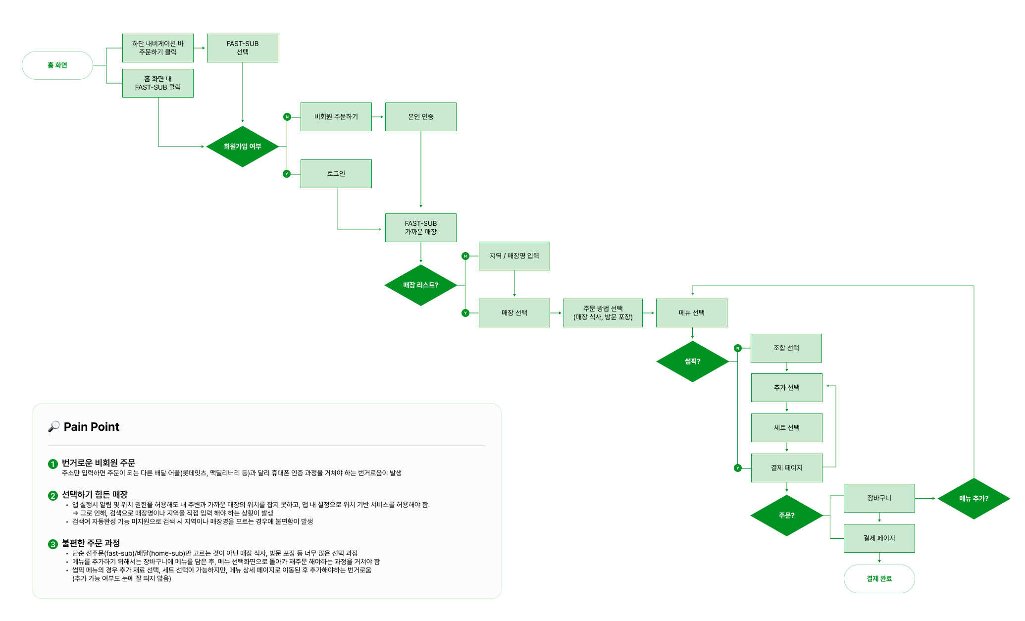써브웨이 핵심 기능인 FAST-SUB 부분 유저 플로우를 그려봤다.